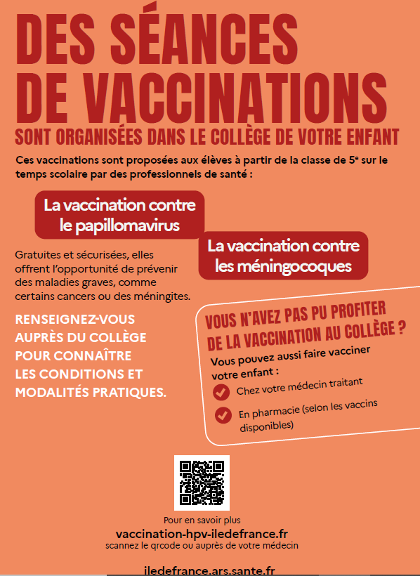 La vaccination aura lieu au sein du collège entre février et avril, nous vous informerons de la date précise ultérieurement.